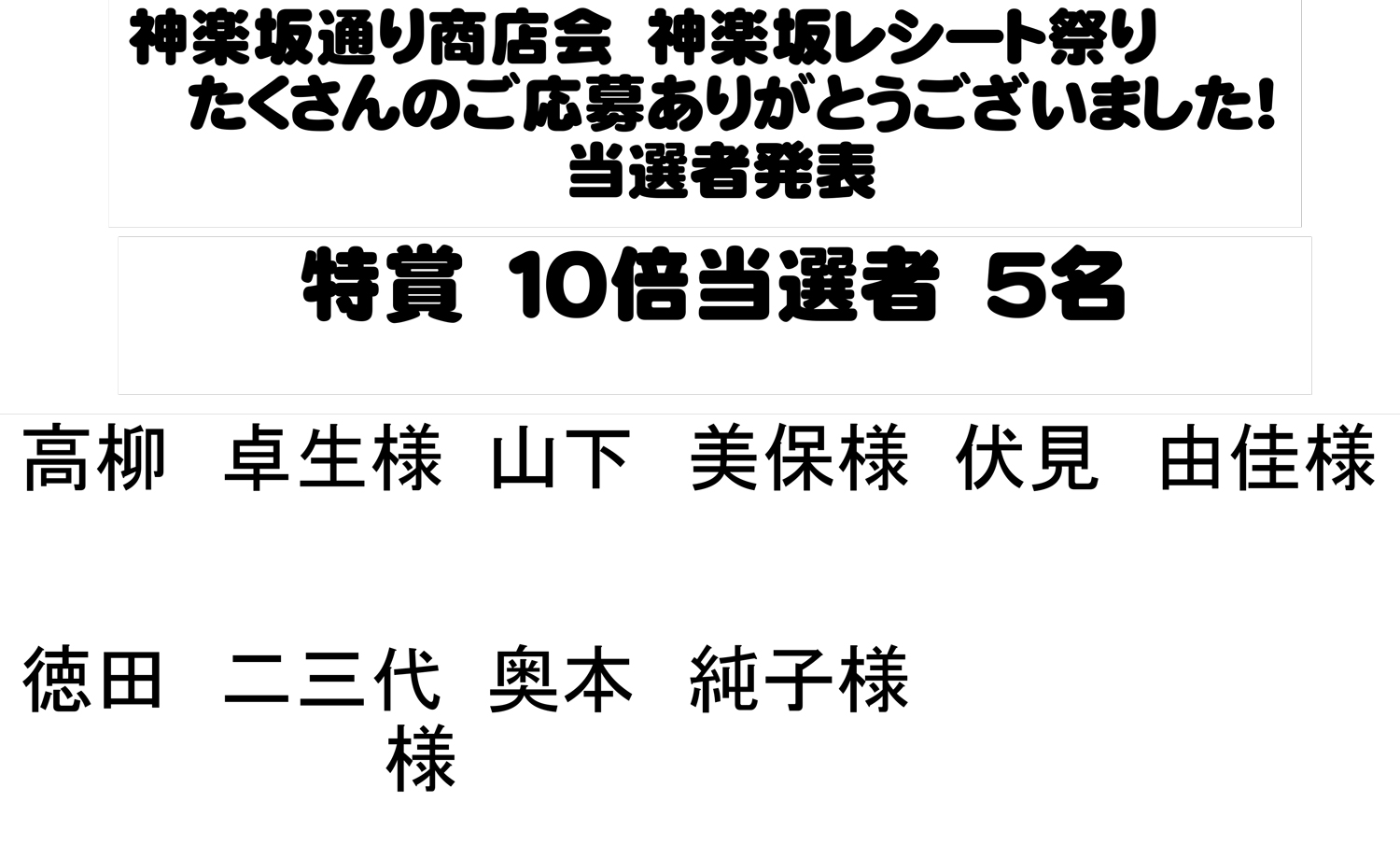2025年神楽坂レシート祭り 当選者が発表となりました。