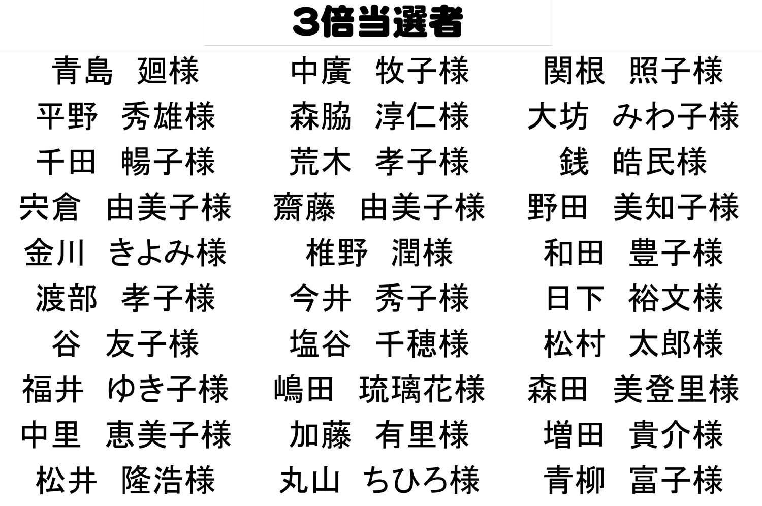 当選者の皆さまにはレシートに記載して頂いたご住所宛に当選葉書が郵送されます。